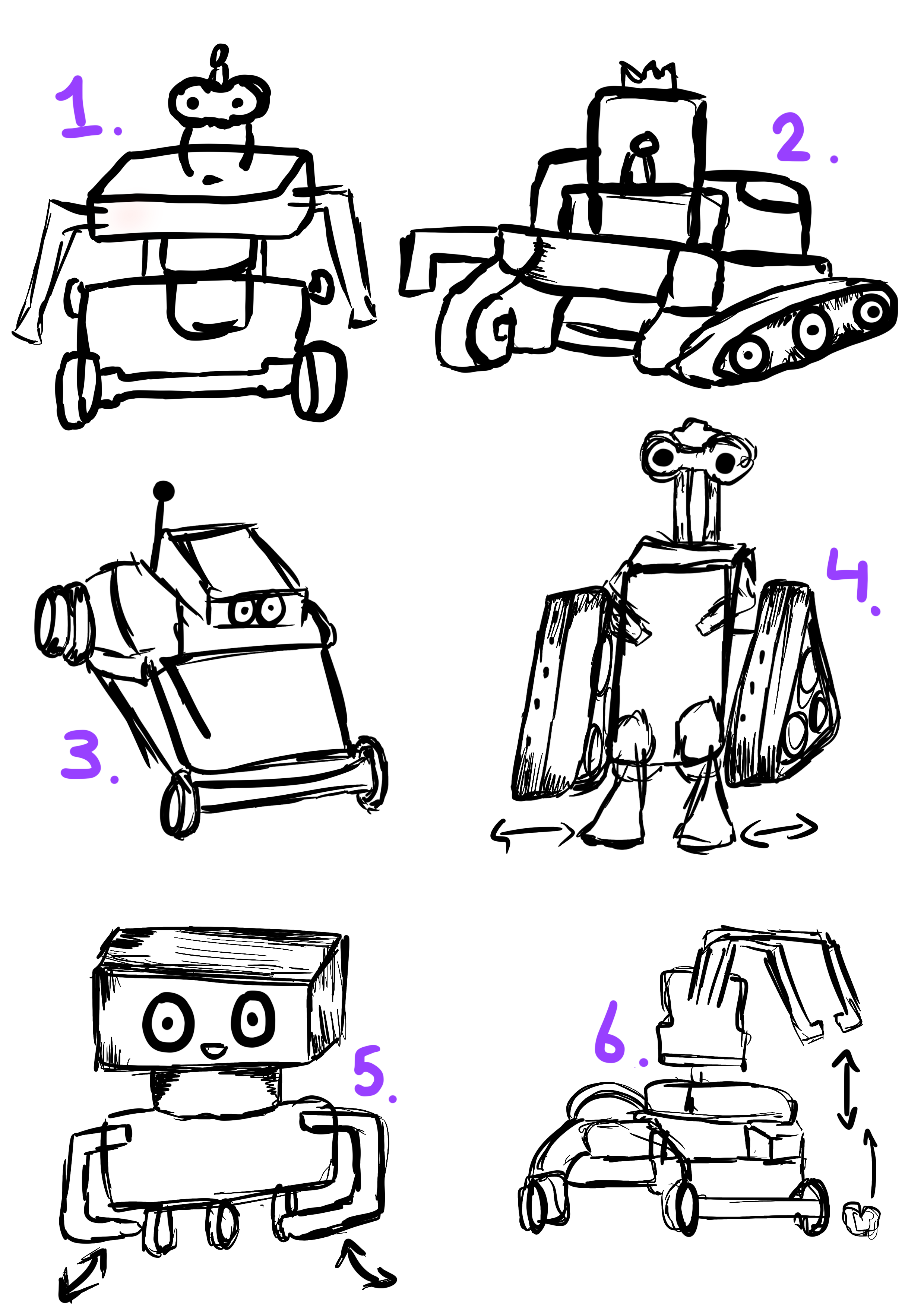 Onze schetsen voor de robot hoe hij eruit hoort te zien, helaas zijn deze moeilijk haalbaar met de materialen die we krijgen.